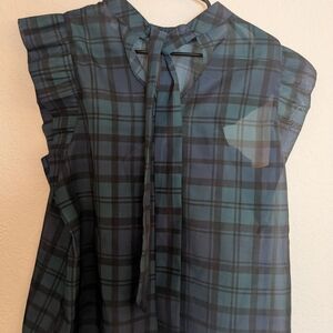 LOFT Plaid Bow Back Ruffle Shell Blouse