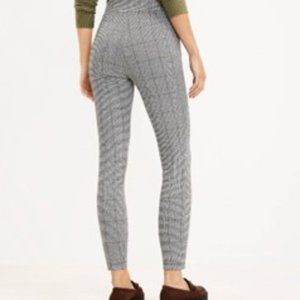 LOFT Plaid Leggings in black & white houndstooth/nailshead pattern. Tightest fit, with a clean performance stretch paneled waistband and fabric developed for ultimate hold and comfort. It hugs all the right places and finishes closely around the ankle. 65% Polyester, 22% Rayon, 9% Nylon, 4% Spandex