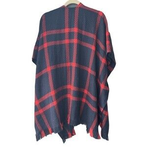 Women’s Red & Blue Plaid Sweater Shawl Shrug Fringe by LOFT