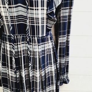 new with tags! Navy plaid pull over dress by Loft. Feminine Ruffle detail. excellent condition.