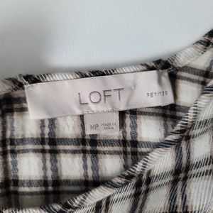 LOFT Plaid Ruffle Long Sleeve Crew Neck Blouse Medium Petite