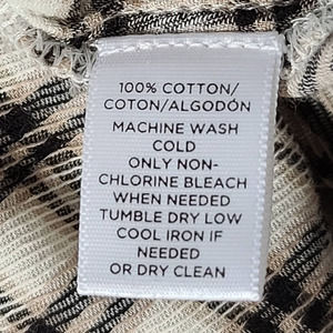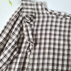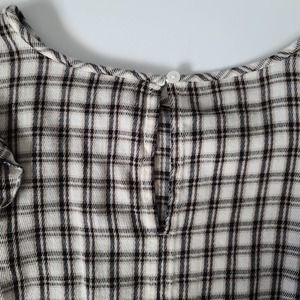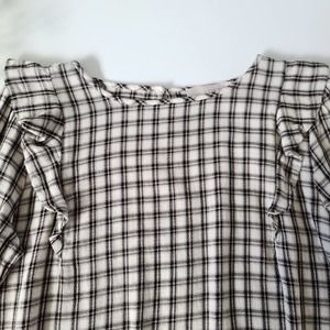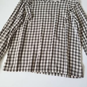 LOFT Crew Neck Ruffle Long Sleeve Cream Plaid Blouse Medium Petite