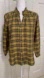 LOFT Plaid Ruffle Neck Button Down Shirt Small Petite Mustard Black Career