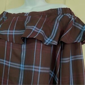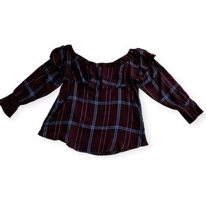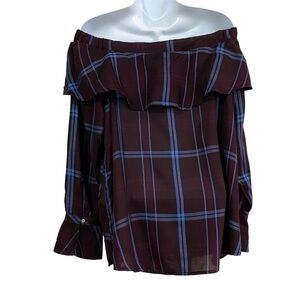 NWT LOFT Plaid Ruffle Off The Shoulder Plum Blouse Size M Medium