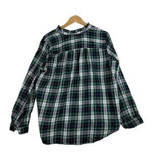 LOFT | Plaid Ruffle Utility Henley Green Blouse Size Large