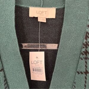 LOFT Plaid Sweater Jacket Cardigan Button Front NWT Size M