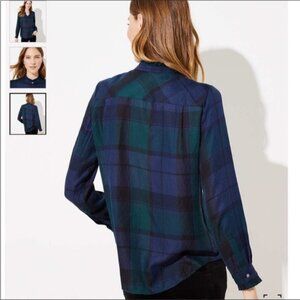 LOFT | Plaid Tartan Ruffle Button Down Long Sleeve Blouse | Blue/Green | XL