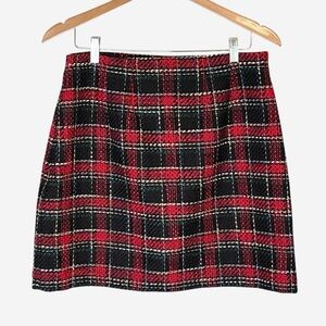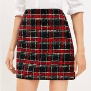 LOFT Plaid Textured Tweed Mini Shift Skirt