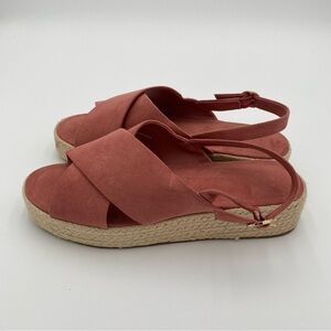 LOFT Platform Strappy Espadrille Criss Cross Summer Sandals Salmon Pink 9 NWOT