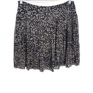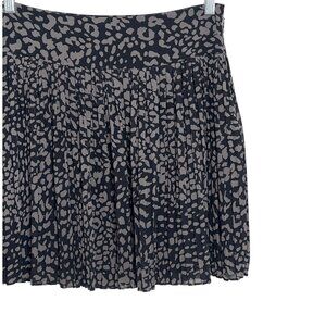 LOFT Pleated Mini Skirt Black Gray Animal Print Flare Career Size 6
