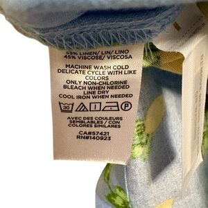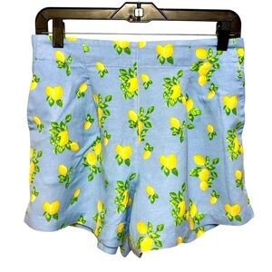 LOFT Pleated Pull On Linen Shorts in Lemon Print & Blue, Womens size Small