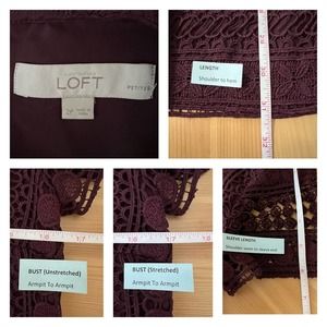 LOFT Plum Purple Lace Shift Dress Size 2P 2 Petite Short Sleeve Career Ruffle