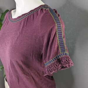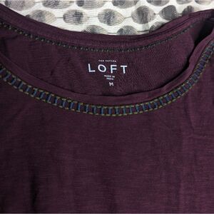 Ann Taylor Loft Plum Embroidered Short Sleeve Shirt. Women's size medium.