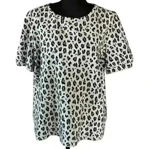 LOFT Plus Animal Print Puff Sleeve Top, size 14