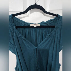 LOFT Plus Dark Teal Blue Clip Dot Romper in Size 22