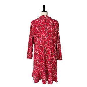 LOFT Plus Dress A-line Long Sleeve Ruffle Button Neck Red Floral Women’s Size 18