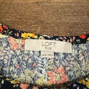 LOFT Plus Floral Puff Sleeve Blouse 16 Feminine Romantic Textured Navy Orange
