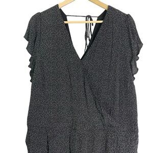 LOFT Plus Jumpsuit in Black Dots Flutter Sleeve Wrap Top 16