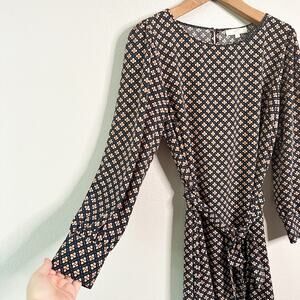 LOFT Plus Mosaic Tie Waist Long Sleeve Shirt Dress Women's Size 18