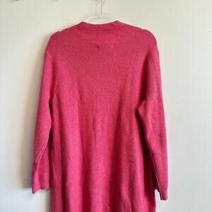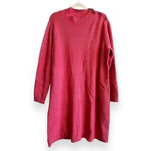 LOFT Plus Pink Ribbed Cotton Blend Sweater Dress Mock Neck Buttons Size 20/22