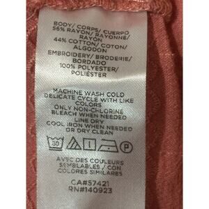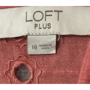 Elevate your wardrobe with this beautiful LOFT Plus embroidered eyelet blouse in a soft coral rose red shade. Designed with a flattering peplum silhouette, delicate eyelet embroidery, and a split V-neck with button detail, this blouse blends comfort and elegance. Perfect for work, brunch, or casual outings.