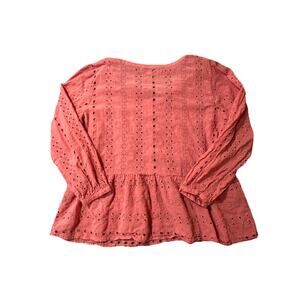 LOFT Plus Size 18 Coral Eyelet Embroidered Peplum Blouse Long Sleeve Boho Top