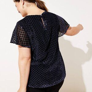 LOFT Plus - Velvet Dot Flutter Sleeve Top - Size 16W – Blue