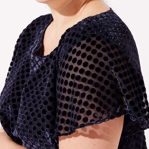 Ann Taylor LOFT Plus - Velvet Dot Flutter Sleeve Top - 16W - Forever Navy