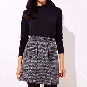 This black, white, and metallic silver tweed mini skirt was purchased when Loft still had plus size clothing- RIP- but was never worn, only tried on.