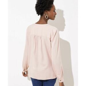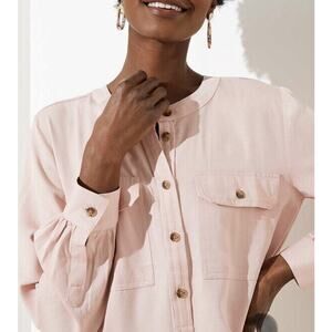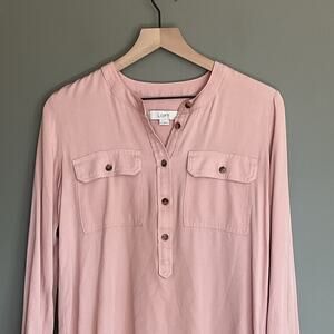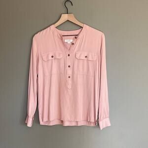 LOFT Pocket Henley Utility Blouse in Dim Rose Size XS Pink Long Sleeve Top