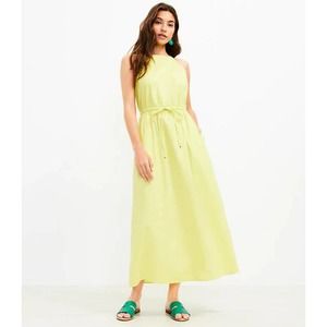 LOFT Pocket Midi Dress in Glowing Lime Drawstring Keyhole Back Size XL
