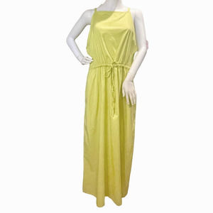 Minimalist yet flowy with a sporty drawstring waist. Citron color dress. Ballet neck. Sleeveless. Elasticized drawstring waist. Back button keyhole. And who doesn't love side slit pockets on a dress?!?! Yes, please!!!
