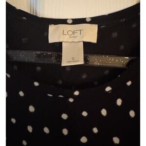 The blouse has a brand name of LOFT, which is known for its quality and style. The blouse is perfect for casual wear or for special occasions, and it can be paired with jeans or a skirt. The polka dot pattern adds a touch of playfulness to the blouse, making it a great choice for those who want to add some fun to their wardrobe.