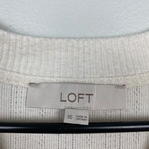 LOFT Puff Sleeve Sweater Blouse Button Up Short Sleeve Cream White Cottagecore XS