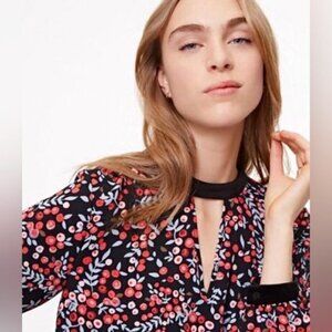 LOFT | Puffer Long Sleeve Floral Berry Keyhole XSP