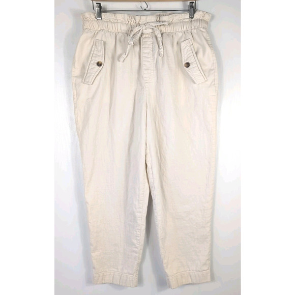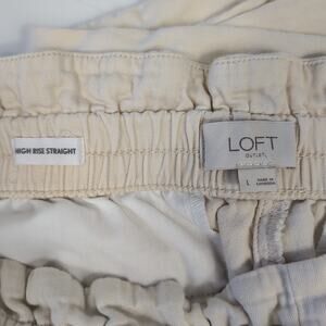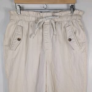 LOFT Pull On Pants Women’s Large Beige Paperbag Waist Casual Lightweight Cotton