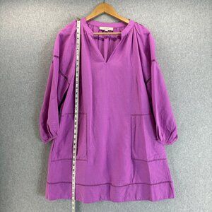 LOFT Purple Cutout Linen Blend Pocket Dress Tunic Womens Medium 3/4 Puff Sleeve