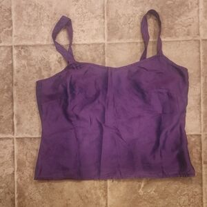 LOFT Purple Silk Fitted Crop Camisole Adjustable Strap Size 4P