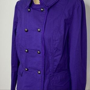LOFT purple military style jacket. Gorgeous purple with fray detail on edges. Gunmetal buttons and inside snaps.
