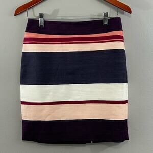 LOFT Purple Pink Striped Cotton Blend Textured Short Pencil Skirt Sz 2 P