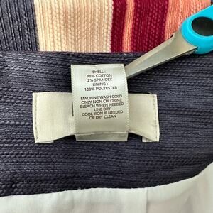 LOFT Outlet multi-colored striped cotton blend short pencil skirt. Back zipper closure, back slit, fully lined, textured material, stretch.