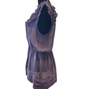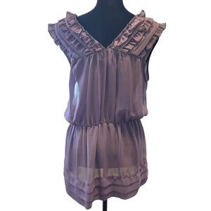 Chic blouse with layered ruffles. Soft sheer fabric and elegant design.Light purple, size small.