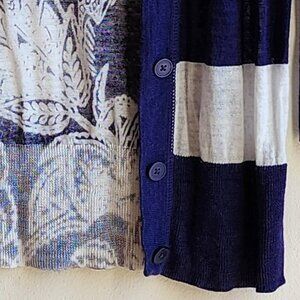 LOFT Purple/White Striped Mixed Media Cardigan Sweater Size Small