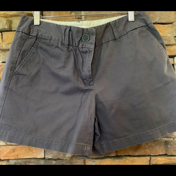 Loft Shorts. Cotton Fabric in Dark Gray Color. 6 inch inseam, button & zipper front closure. Two pockets in front and two pockets in back. No rips or stains. Comes from a smoke free home.
