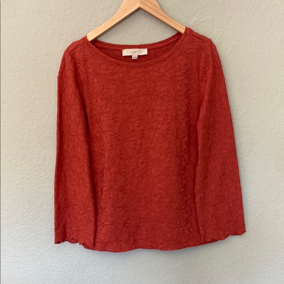 This LOFT top in a rich red hue combines the cozy comfort of a sweatshirt with the stylish appeal of a hoodie. Its boxy silhouette offers a relaxed fit, perfect for casual outings or lounging at home. The subtle texture adds a touch of elegance to this versatile piece.