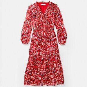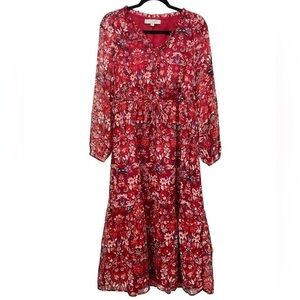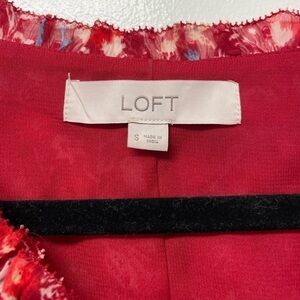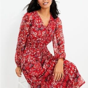 LOFT Red Floral Clip V-Neck Midi Dress