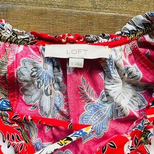 Add a bold pop of color to your wardrobe with this gorgeous LOFT midi dress in size Small. Featuring a vibrant red background with stunning floral patterns in white, blue, and yellow, this dress is perfect for sunny days, vacations, or casual get-togethers.