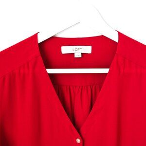 LOFT Red Long Sleeve V Neck Blouse - Size Small