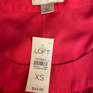 This vibrant red blouse from LOFT features charming ruffled details that add a touch of elegance to its design. Crafted from a lightweight fabric, it offers a relaxed fit perfect for any occasion. The tiered ruffles around the neckline create a cascading effect, enhancing its stylish appeal.