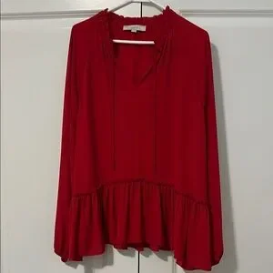 Elegant red blouse with ruffled details. Ideal for any occasion.
